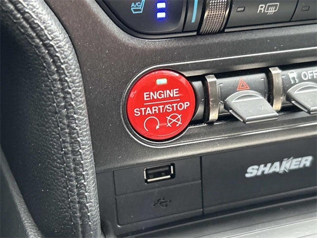 This vehicle includes the following features and options: GT350 Equipment Group 900A, Ford Blue Advantage: Blue Certified Certified, Navigation System, 4-Wheel Disc Brakes, 6 Speakers, ABS brakes, Air Conditioning, Alloy wheels, AM/FM radio, AM/FM Stereo/Single CD Player, Auto-dimming Rear-View mirror, Block heater, Brake assist, Bumpers: body-color, Compass, Delay-off headlights, Driver door bin, Driver vanity mirror, Dual front impact airbags, Dual front side impact airbags, Electronic Stability Control, Emergency communication system: 911 Assist, Exterior Parking Camera Rear, Four wheel independent suspension, Front anti-roll bar, Front Bucket Seats, Front Center Armrest, Front reading lights, Fully automatic headlights, High-Intensity Discharge Headlights, Illuminated entry, Knee airbag, Low tire pressure warning, Occupant sensing airbag, Outside temperature display, Over-the-Top Racing Stripe, Overhead airbag, Overhead console, Panic alarm, Passenger door bin, Passenger vanity mirror, Power door mirrors, Power steering, Power windows, Radio data system, Rear anti-roll bar, Rear window defroster, RECARO Cloth/Miko Suede Sport Seats, Remote keyless entry, Security system, Speed control, Speed-sensing steering, Speed-Sensitive Wipers, Split folding rear seat, Spoiler, Sport steering wheel, Steering wheel mounted audio controls, SYNC Communications & Entertainment System, Tachometer, Telescoping steering wheel, Tilt steering wheel, Traction control, Trip computer, Variably intermittent wipers, Voltmeter, Weathershield Full Vehicle Cover (Dealer Installed), and Wheels: 19 x 10.5 Fr/19 x 11 Rr Ebony Black.
