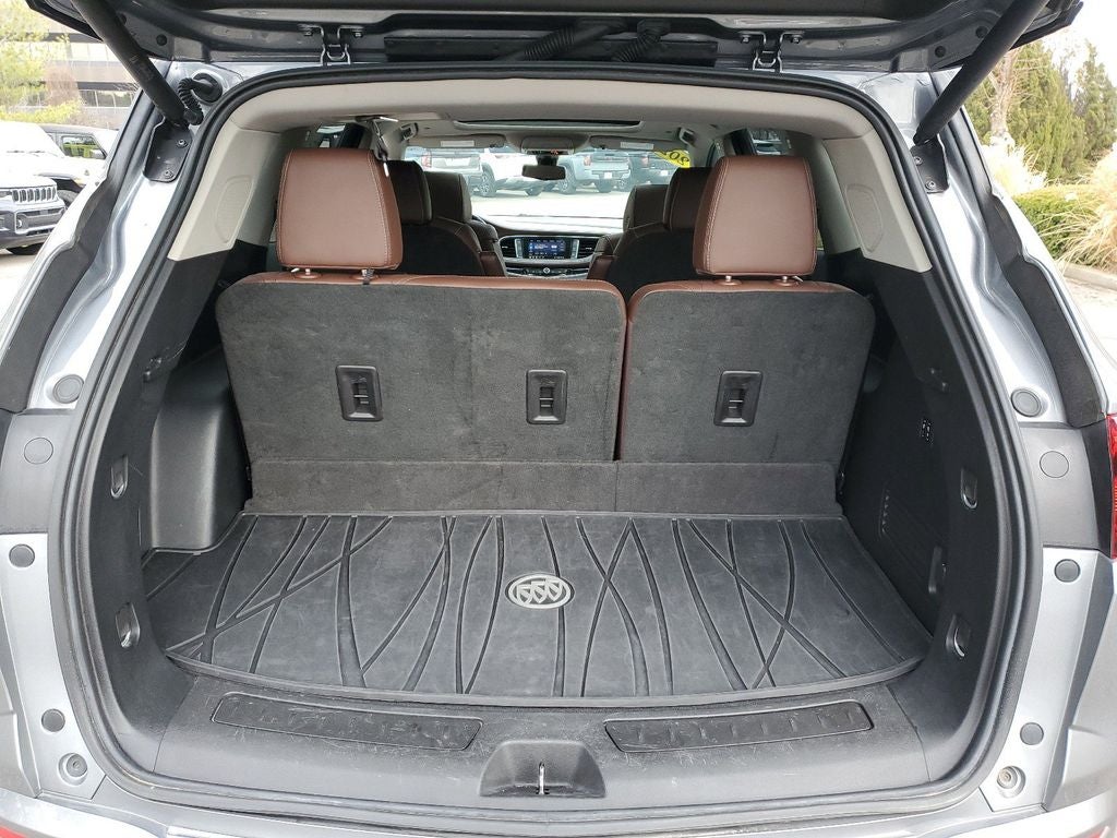 THIS VEHICLE INCLUDES THE FOLLOWING FEATURES AND OPTIONS: Avenir Package (120-Volt Power Outlet, 3rd Row 60/40 Power Fold Split-Bench, Automatic Heated Steering Wheel, Front Power Sliding Moonroof, HD Radio, HD Surround Vision, Heated 2nd Row Outboard Seats, Heated Driver & Front Passenger Seats, Inside Rearview Mirror w/Full Camera Display, Outside Heated Power-Adjustable Mirrors, Power Tilt & Telescopic Steering Column, Ventilated Driver & Front Passenger Seats, Wheels & Front Door Badging, and Wireless Charging), Buick Interior Protection Package (LPO) (3rd Row All-Weather Floor Mats, All-Weather Cargo Mat (LPO), and All-Weather Floor Mats), Memory Package, Preferred Equipment Group 1SP, AWD, 10 Speakers, 3.49 Axle Ratio, 3rd row seats: split-bench, 4-Wheel Disc Brakes, 7-Passenger Seating, ABS brakes, Air Conditioning, Alloy wheels, AM/FM radio: SiriusXM with 360L, Apple CarPlay/Android Auto, Audio memory, Auto High-beam Headlights, Auto tilt-away steering wheel, Auto-dimming door mirrors, Auto-dimming Rear-View mirror, Automatic temperature control, Bose Performance-Enhanced 10-Speaker System, Brake assist, Bumpers: body-color, Compass, Delay-off headlights, Driver 4-Way Power Lumbar Seat Adjuster, Driver door bin, Driver vanity mirror, Dual front impact airbags, Dual front side impact airbags, Electronic Stability Control, Emergency communication system: OnStar and Buick connected services capable, Four wheel independent suspension, Front anti-roll bar, Front Bucket Seats, Front Center Armrest, Front dual zone A/C, Front Passenger 4-Way Power Lumbar Seat Adjuster, Front reading lights, Fully automatic headlights, Garage door transmitter, Heated door mirrors, Heated front seats, Heated rear seats, Heated steering wheel, Illuminated entry, Leather steering wheel, Low tire pressure warning, Memory seat, Navigation System, Occupant sensing airbag, Outside temperature display, Overhead airbag, Overhead console, Panic alarm, Passenger door bin, Passenger vanity mirror, Perforated Leather-Appointed Seat Trim, Power door mirrors, Power driver seat, Power Liftgate, Power moonroof, Power passenger seat, Power steering, Power windows, Premium audio system: Buick Infotainment System, Radio data system, Radio: Buick Infotainment Sys AM/FM Stereo w/Nav, Rear air conditioning, Rear anti-roll bar, Rear reading lights, Rear window defroster, Rear window wiper, Remote keyless entry, Roof rack: rails only, Security system, SiriusXM w/360L, Speed control, Speed-sensing steering, Spoiler, Steering wheel memory, Steering wheel mounted audio controls, Tachometer, Telescoping steering wheel, Tilt steering wheel, Traction control, Trip computer, Turn signal indicator mirrors, Variably intermittent wipers, Ventilated front seats, Voltmeter, Wheel Locks, and Wheels: 20 Aluminum w/Premium Pearl Nickel Finish.