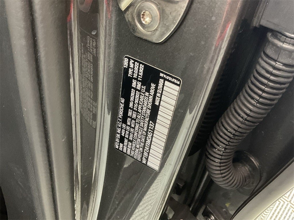 The Optional Features Included on this are: 18-Way Adaptive Sport Seats Plus w/Memory Package, 14 Speakers, 4-Wheel Disc Brakes, ABS brakes, Adaptive suspension, Air Conditioning, Alloy wheels, AM/FM radio: SiriusXM, Apple CarPlay, Audio memory, Auto tilt-away steering wheel, Auto-dimming door mirrors, Auto-dimming Rear-View mirror, Auto-leveling suspension, Automatic temperature control, Axle Ratio: TBD, Brake assist, Bumpers: body-color, Delay-off headlights, Driver door bin, Driver vanity mirror, Dual front impact airbags, Dual front side impact airbags, Electronic Stability Control, Exterior Parking Camera Rear, Four wheel independent suspension, Front anti-roll bar, Front Bucket Seats, Front Center Armrest, Front dual zone A/C, Front reading lights, Fully automatic headlights, Garage door transmitter: HomeLink, Heated door mirrors, Heated front seats, Heated rear seats, Heated steering wheel, HVAC memory, Illuminated entry, Knee airbag, Leather Seat Trim w/Leather Interior, Leather Shift Knob, Low tire pressure warning, Memory seat, Navigation System, Occupant sensing airbag, Outside temperature display, Overhead airbag, Overhead console, Panic alarm, Passenger door bin, Passenger vanity mirror, Porsche Communication Management, Power door mirrors, Power driver seat, Power Liftgate, Power passenger seat, Power steering, Power windows, Radio data system, Rain sensing wipers, Rear anti-roll bar, Rear fog lights, Rear reading lights, Rear seat center armrest, Rear side impact airbag, Rear window defroster, Remote keyless entry, Security system, Speed control, Speed-sensing steering, Split folding rear seat, Spoiler, Steering wheel memory, Steering wheel mounted audio controls, Tachometer, Telescoping steering wheel, Tilt steering wheel, Traction control, Trip computer, Turn signal indicator mirrors, Variably intermittent wipers, Voltmeter, and Wheels: 21 Cayenne Turbo w/Arch Extensions.