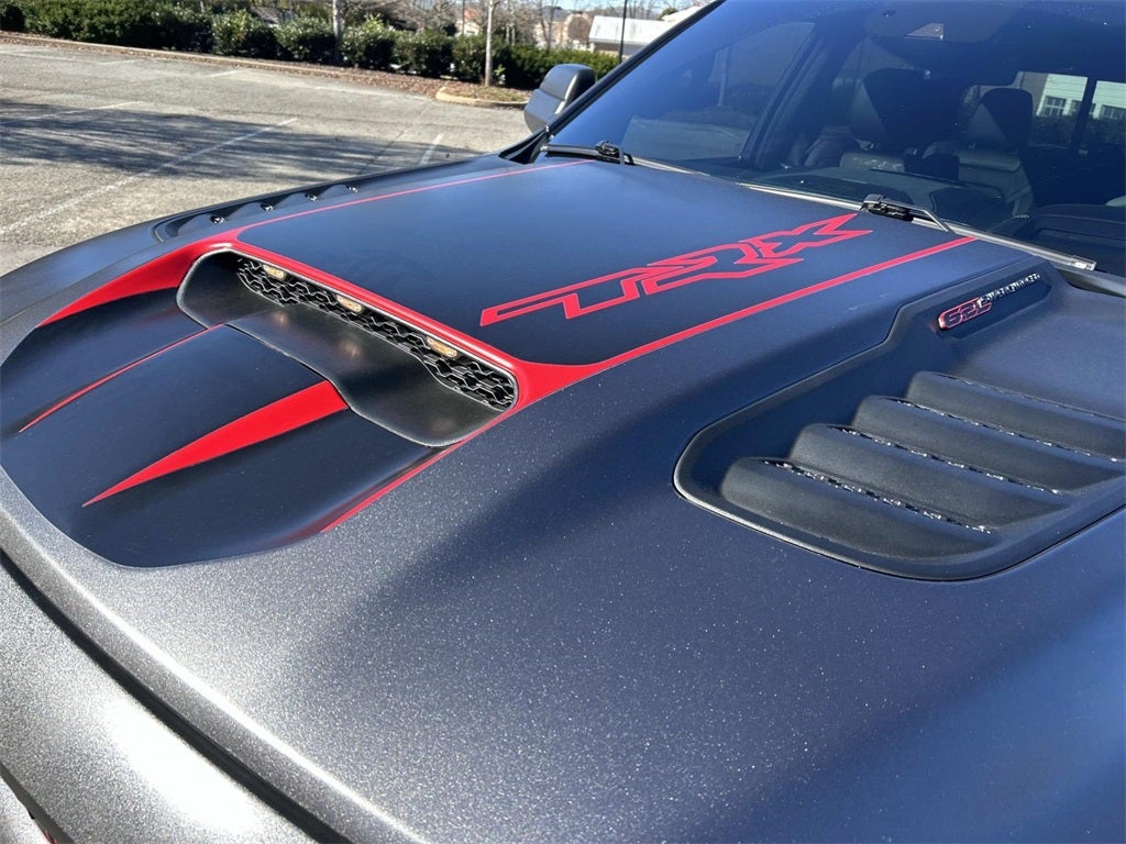 The full list of features includes: Bed Utility Group (MOPAR 4 Adjustable Cargo Tie-Down Hooks, MOPAR Deployable Bed Step, and MOPAR Spray In Bedliner), Quick Order Package 29Y, Trailer Tow Group (Trailer Brake Control, Trailer Light Check, and Trailer Tire Pressure Monitoring System), TRX Carbon Fiber Package (Leather/Carbon Flat-Bottom Steering Wheel and Real Carbon Fiber Interior Accents), TRX Level 2 Equipment Group (#2 Seat Foam Cushion, 2-Door Passive Entry, Front Door Locks, 4 Way Front Headrests, Blind Spot & Cross Path Detection, Body Color Door Handles, Bucket Seats, Center Console Parts Module, Digital Rearview Mirror, Driver Seat Memory, Driver/Passenger Wrapped Assist Handles, Exterior Mirrors w/Memory, Front Door Accent Lighting, Front Seat Back Map Pockets, Full Length Premium Upgraded Floor Console, harman/kardon 19 Speaker Premium Sound, Heads-Up Display, Heated Front Seats, Heated Second Row Seats, Heated Steering Wheel, IP LED Ambient Light Pipe, Leather Trimmed Bucket Seats, Leather/Suede Flat-Bottom Steering Wheel, LED CHMSL Lamp, Luxury Front Door Trim Panel, MOPAR Bright Pedal Kit, ParkSense Front/Rear Park Assist w/Stop, Pick-Up Box Lighting, Power 4-Way Driver Lumbar Adjust, Power 4-Way Passenger Lumbar Adjust, Power 8-Way Driver & Passenger Seats, Power Adjustable Pedals w/Memory, Premium Wrapped IP Bezel, Radio/Driver Seat/Mirrors/Pedals Memory, Rain Sensitive Windshield Wipers, Rear 60/40 Folding Seat, Rear 60/40 Folding Split Recline Seat, Rear Door Accent Lighting, Rear Underseat Compartment Storage, Rear Window Defroster, Remote Tailgate Release, Sun Visors w/Illuminated Vanity Mirrors, Surround View Camera System, Universal Garage Door Opener, Ventilated Front Seats, Ventilated Rear Seats, and Wireless Charging Pad), 10 Speakers, 3.55 Rear Axle Ratio, 4-Wheel Disc Brakes, ABS brakes, Adaptive suspension, Air Conditioning, Alloy wheels, AM/FM radio: SiriusXM with 360L, Apple CarPlay/Android Auto, Auto High-beam Headlights, Auto-dimming door mirrors, Auto-dimming Rear-View mirror, Automatic temperature control, Black Exterior Mirrors, Black Power-Fold Trailer Tow Mirrors, Brake assist, Cloth/Vinyl Bucket Seats, Compass, Delay-off headlights, Dome Dual LED Reading Lamp, Driver door bin, Dual front impact airbags, Dual front side impact airbags, Dual-Pane Panoramic Sunroof, Electronic Stability Control, Exterior Mirrors Courtesy Lamps, Exterior Mirrors w/Heating Element, Exterior Mirrors w/Supplemental Signals, Front anti-roll bar, Front Bucket Seats, Front Center Armrest w/Storage, Front dual zone A/C, Front fog lights, Front reading lights, Front wheel independent suspension, Fully automatic headlights, Heated door mirrors, Illuminated entry, Leather Shift Knob, Leather steering wheel, Low tire pressure warning, Mirror Clearance/Running Lights, Mirror-Mounted Aux Reverse Lamps, Navigation System, Occupant sensing airbag, Outside temperature display, Overhead airbag, Overhead console, Panic alarm, ParkView Rear Back-Up Camera, Passenger door bin, Passenger vanity mirror, Power door mirrors, Power driver seat, Power steering, Power windows, Power-Folding Mirrors, Radio data system, Radio: Uconnect 5 Nav w/12.0 Display, Rear seat center armrest, Rear step bumper, Remote keyless entry, Security system, Speed control, Split folding rear seat, Sport steering wheel, Steering wheel mounted audio controls, Tachometer, Telescoping steering wheel, ... and MORE!