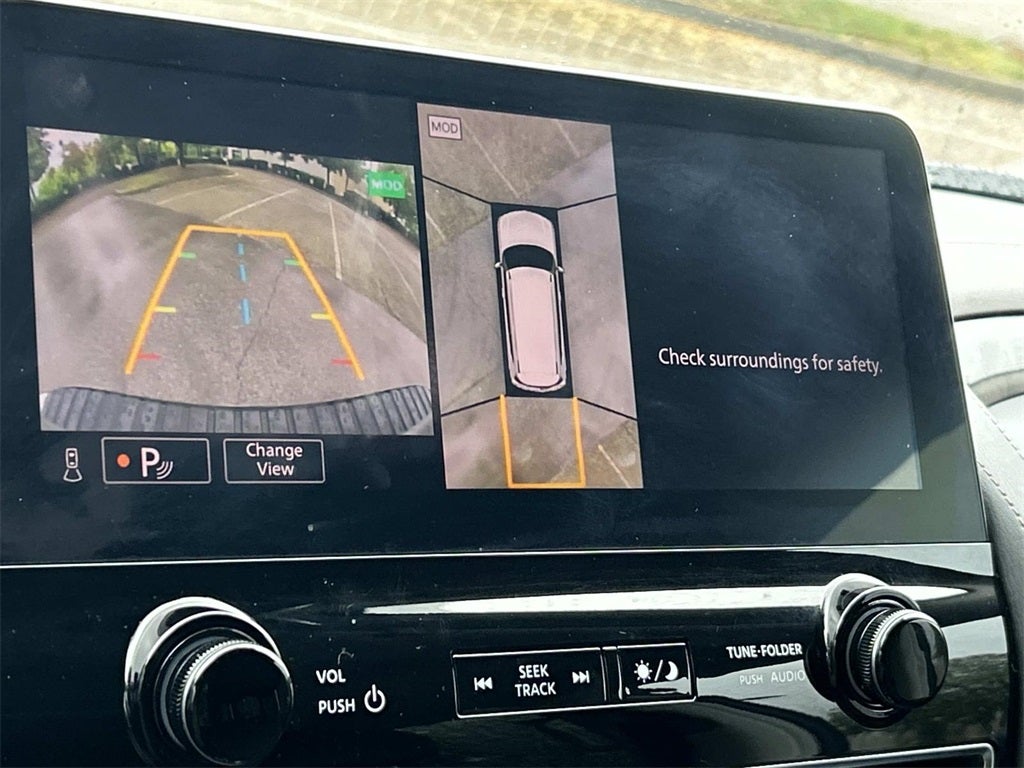 The full list of features includes: Captain's Chairs Package (2nd Row Captain's Chairs and 2nd Row Center Console w/Padded Armrest), Cargo Package, 4WD, 13 Speakers, 2.937 Axle Ratio, 3rd Row Carpeted Floor Mats - Captain Seat, 3rd row seats: split-bench, 4-Wheel Disc Brakes, ABS brakes, Air Conditioning, Alloy wheels, AM/FM radio: SiriusXM, Anti-whiplash front head restraints, Auto High-beam Headlights, Auto tilt-away steering wheel, Auto-dimming door mirrors, Auto-dimming Rear-View mirror, Auto-leveling suspension, Automatic temperature control, Brake assist, Bumpers: body-color, Climate-Controlled Front Bucket Seats, Cruise Control, Dash Cam - Dual Camera Drive Recorder, Delay-off headlights, Driver door bin, Driver vanity mirror, Dual front impact airbags, Dual front side impact airbags, Electronic Stability Control, Emergency communication system: NissanConnect Services, Exterior Parking Camera Rear, Four wheel independent suspension, Front anti-roll bar, Front Bucket Seats, Front Center Armrest, Front dual zone A/C, Front fog lights, Front reading lights, Fully automatic headlights, Garage door transmitter: HomeLink, Heated front seats, Heated rear seats, Heated Side View Mirrors, Heated steering wheel, HVAC memory, Illuminated entry, Illuminated Kick Plates, Illuminated Scuff Plate, Knee airbag, Leather Shift Knob, Leather steering wheel, Low tire pressure warning, Memory seat, Navigation System, Nissan USB Charging Cable Set, Occupant sensing airbag, Outside temperature display, Overhead airbag, Overhead console, Panic alarm, Passenger door bin, Passenger vanity mirror, Power door mirrors, Power driver seat, Power Liftgate, Power Panoramic Moonroof, Power passenger seat, Power steering, Power windows, Quilted Leather Seat Trim, Radio: NissanConnect w/SiriusXM, Rain sensing wipers, Rear air conditioning, Rear anti-roll bar, Rear reading lights, Rear seat center armrest, Rear window defroster, Rear window wiper, Reclining 3rd row seat, Remote keyless entry, Roof Rail Cross Bars - Gun Metal, Security system, Speed-sensing steering, Speed-Sensitive Wipers, Split folding rear seat, Spoiler, Steering wheel memory, Steering wheel mounted audio controls, Tachometer, Telescoping steering wheel, Tilt steering wheel, Traction control, Trip computer, Turn signal indicator mirrors, Variably intermittent wipers, Ventilated front seats, Voltmeter, Welcome Lighting, and Wheels: 22 x 8J Machine-Faced w/Tinted Clear Coat.