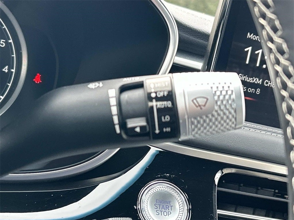 The full list of features includes: ABS brakes, Active Cruise Control, Alloy wheels, Electronic Stability Control, Front dual zone A/C, Heated door mirrors, Heated front seats, Illuminated entry, Low tire pressure warning, Navigation System, Power moonroof, Remote keyless entry, Traction control, 15 Speakers, 4-Wheel Disc Brakes, Air Conditioning, AM/FM radio: SiriusXM, Android Auto & Apple CarPlay, Anti-whiplash front head restraints, Auto High-beam Headlights, Auto-dimming door mirrors, Auto-dimming Rear-View mirror, Automatic temperature control, Brake assist, Bumpers: body-color, Delay-off headlights, Driver door bin, Driver vanity mirror, Dual front impact airbags, Dual front side impact airbags, Emergency communication system: Genesis Connected Services, Exterior Parking Camera Rear, Four wheel independent suspension, Front anti-roll bar, Front Bucket Seats, Front Center Armrest, Front reading lights, Fully automatic headlights, Garage door transmitter: HomeLink, Heated steering wheel, Htd & Ventilated Multi-Adjustable Fr Bucket Seats, Knee airbag, Leather Seating Surfaces, Leather steering wheel, Memory seat, Occupant sensing airbag, Outside temperature display, Overhead airbag, Overhead console, Panic alarm, Passenger door bin, Passenger vanity mirror, Power door mirrors, Power driver seat, Power passenger seat, Power steering, Power windows, Radio: AM/FM/SiriusXM/HD Lexicon Prem Audio System, Rain sensing wipers, Rear anti-roll bar, Rear reading lights, Rear seat center armrest, Rear side impact airbag, Rear window defroster, Security system, Speed control, Speed-sensing steering, Speed-Sensitive Wipers, Split folding rear seat, Steering wheel memory, Steering wheel mounted audio controls, Tachometer, Telescoping steering wheel, Trip computer, Turn signal indicator mirrors, Variably intermittent wipers, Ventilated front seats, and Wheels: 19 x 8.0J Fr & 19 x 8.5J Rr Sport Alloy.